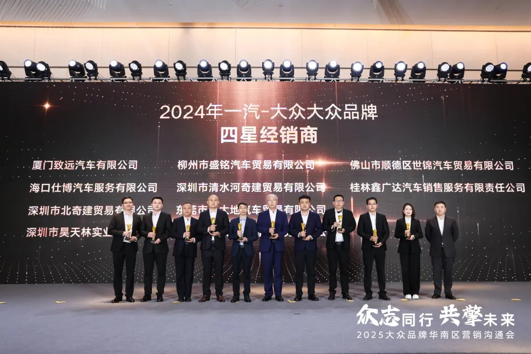 近日,2025大眾品牌經(jīng)銷商合作伙伴大會(huì)、一汽-大眾華南區(qū)經(jīng)銷商年會(huì)相繼召開,2024年度一汽-大眾優(yōu)秀經(jīng)銷商名單及個(gè)人獲獎(jiǎng)名單新鮮出爐。盈眾一汽-大眾團(tuán)隊(duì)憑借過(guò)硬的綜合實(shí)力及銷售業(yè)績(jī)、運(yùn)營(yíng)管理、客戶服務(wù)體驗(yàn)等多維度的亮眼表現(xiàn),榮獲“功勛經(jīng)銷商集團(tuán)”“卓越五星經(jīng)銷商”“五星經(jīng)銷商”“王牌總經(jīng)理”等系列獎(jiǎng)項(xiàng)。
